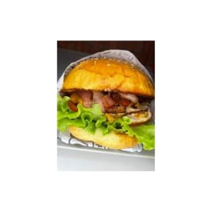 PÃO DE GERGELIM, TOMATE, ALFACE CRESPA, CEBOLA, CHEDDAR, BACON, MUSSARELA, BIFE BOVINO ARTESANAL.